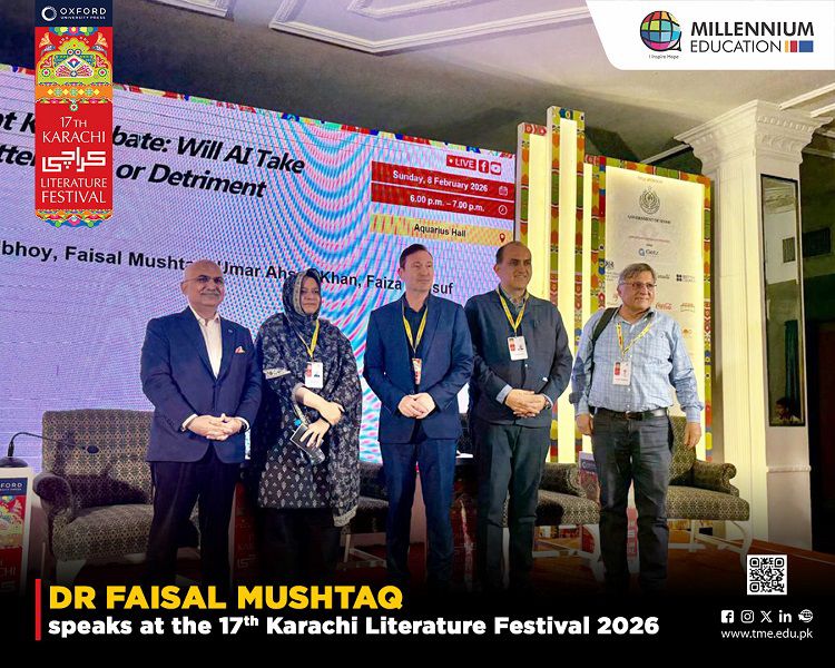 Dr. Chaudhry Faisal Mushtaq, Chairman & CEO of The Millennium Education Group, participated as a speaker at The Great KLF Debate during the Karachi Literature Festival 2026, held at the Beach Luxury Hotel, Karachi.