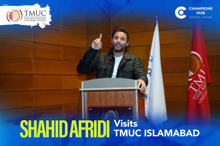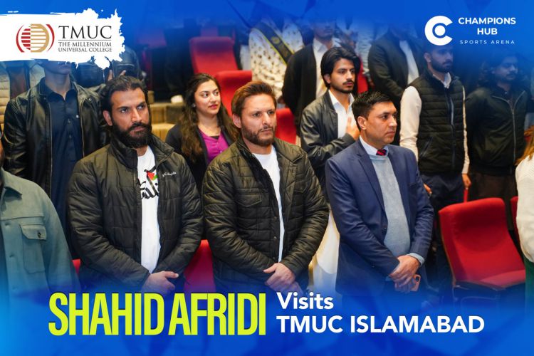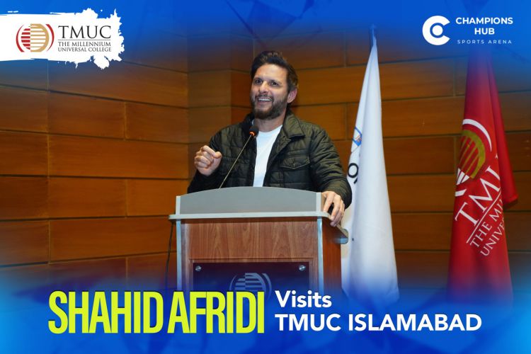 Welcoming the Champions Hub leadership, Dr Faisal Mushtaq TI, Founder and Chief Executive Officer of TMUC Higher Education Group, warmly received Mr Shahid Afridi and Mr Aamir Chottani and delivered an address to the students, emphasising the importance of discipline, leadership, and holistic development alongside academic excellence. Dr Mushtaq highlighted the value of industry-academia partnerships in preparing students for future careers and encouraged them to actively pursue opportunities that combine education, innovation, and sports.
