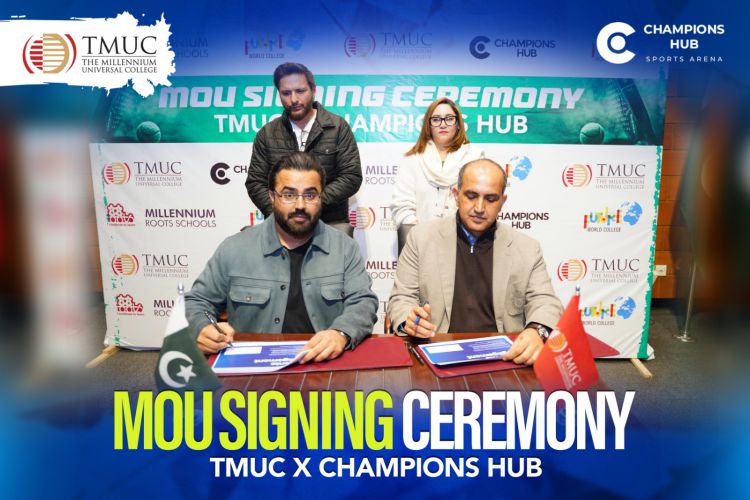 The Millennium Universal College (TMUC) and Champions Hub formalised a landmark partnership through the signing of a Memorandum of Understanding (MOU)Â at TMUC Islamabad, aimed at empowering youth, fostering excellence, and creating meaningful opportunities for the leaders of tomorrow.